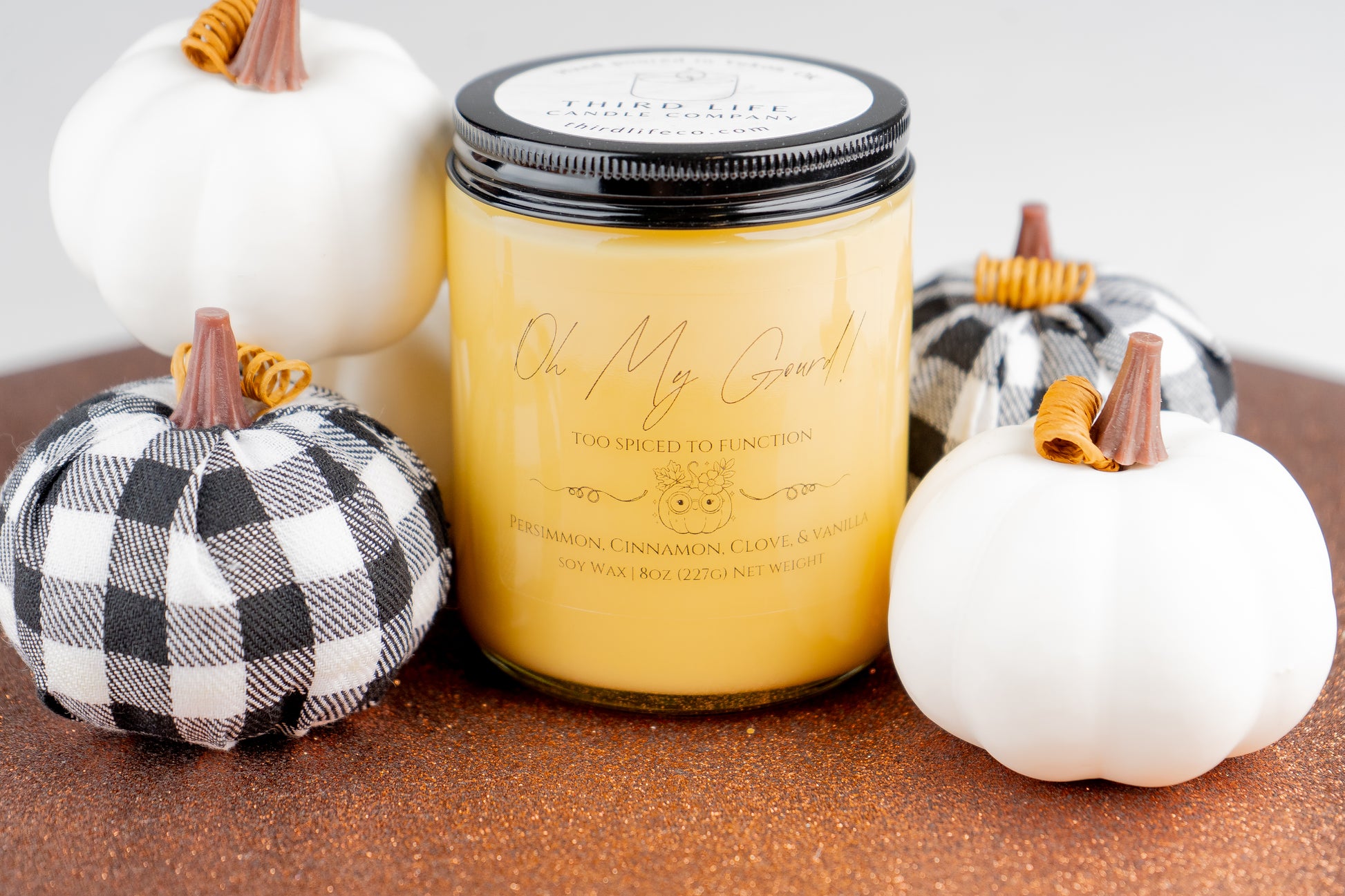 It’s not a regular candle, it’s a cool candle. With juicy orange and persimmon, warm ginger, clove, and cinnamon, and a hint of vanilla bean, it smells like fall walked in wearing pink on a Wednesday.